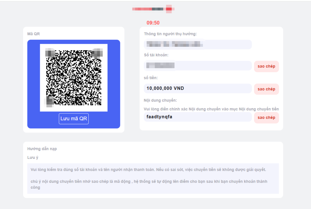 Tùy theo phương thức bạn chọn, hãy nhập số tiền cần nạp, thông tin ngân hàng hoặc mã thẻ, rồi xác nhận. Lưu ý cần kiểm tra thật kỹ thông tin chuyển khoản để đảm bảo đúng cú pháp và tài khoản người nhận mà nền tảng cung cấp.
